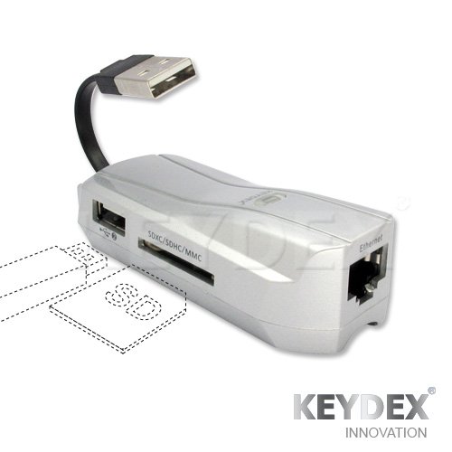 KEYDEX USB Ethernet Lan Network RJ45 Adapter with 2 Port USB Hub and SD/SDHC/SDXC/Micro SDHC/MMC Memory Card Reader Info