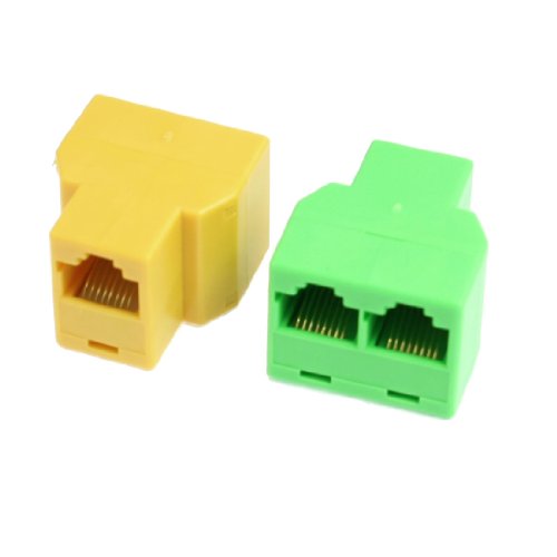Gino RJ45 LAN Network 2 Ways Plug Connector Splitter Yellow Green 2 Pcs Details